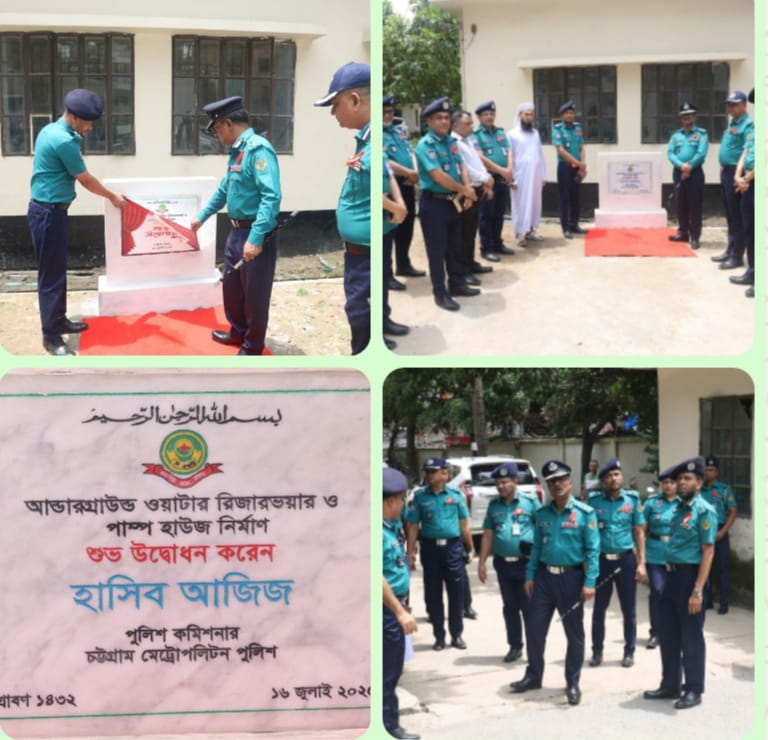 চট্টগ্রাম মেট্রোপলিটন পুলিশের (সিএমপি) অবকাঠামো উন্নয়নের ধারাবাহিকতায় আজ সকাল ১১:০০টায় মনসুরাবাদ পুলিশ লাইন্সে নির্মিত আন্ডারগ্রাউন্ড ওয়াটার রিজারভয়ার, পাম্প হাউস ও টিনশেড ব্যারাকের শুভ উদ্বোধন করেন সিএমপি কমিশনার জনাব হাসিব আজিজ।