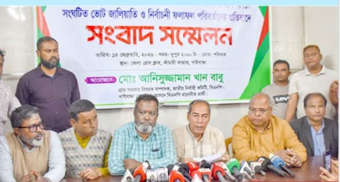 জেলা রিটার্নিং অফিসারের প্রত্যক্ষ মদদে সংঘটিত ভোট জালিয়াতি ও নির্বাচনী ফলাফল পরিবর্তনের প্রতিবাদে সংবাদ সম্মেলন করেছে গাইবান্ধা-০২ সদর আসনের বিএনপি মনোনীত প্রার্থী মো. আনিসুজ্জামান খান বাবু.
