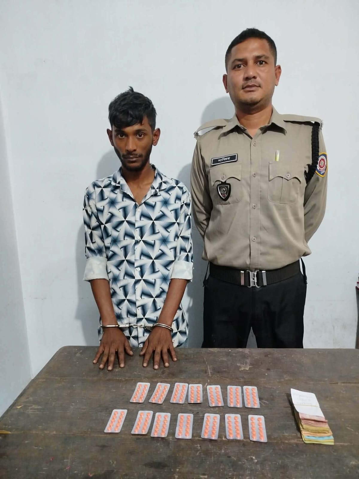 অভিযানকালে তার কাছ থেকে একটি সিনথেটিক ব্যাগ উদ্ধার করা হয়। ব্যাগের ভেতর থেকে ট্যাপেন্টাডলযুক্ত ‘টাপেল’ নামীয় ১৪০ (একশত চল্লিশ) পিস ট্যাবলেট উদ্ধার করা হয়। একই ব্যাগে মাদক বিক্রির ৫ হাজার ৫০০ (পাঁচ হাজার পাঁচশত) টাকা এবং একটি পুরাতন বাটন মোবাইল ফোন (সিমসহ) জব্দ করা হয়েছে।