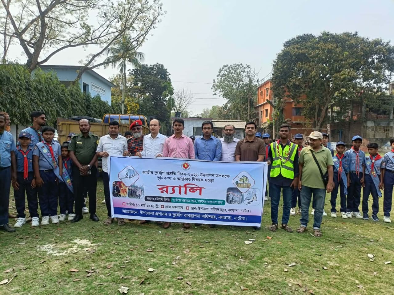 নাটোরের নলডাঙ্গা উপজেলা-এ জাতীয় দুর্যোগ প্রস্তুতি দিবস–২০২৬ উপলক্ষে র্যালি ও মহড়াসহ বিভিন্ন কর্মসূচির আয়োজন করা হয়েছে। মঙ্গলবার (১০ মার্চ ২০২৬) সকালে উপজেলা পরিষদ চত্বরে এ কর্মসূচি অনুষ্ঠিত হয়।
