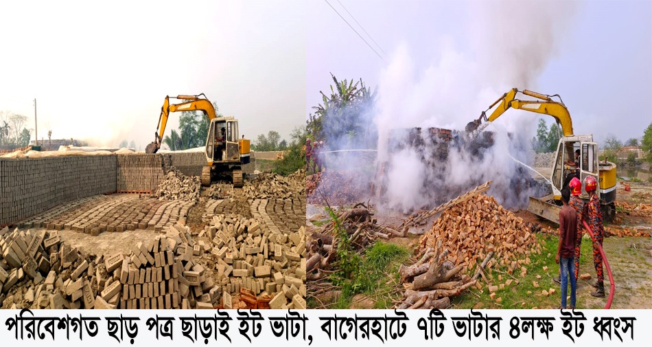 পরিবেশগত ছাড় পত্র ছাড়াই ইট ভাটা, বাগেরহাটে ৭টি ভাটার ৪লক্ষ ইট ধ্বংস