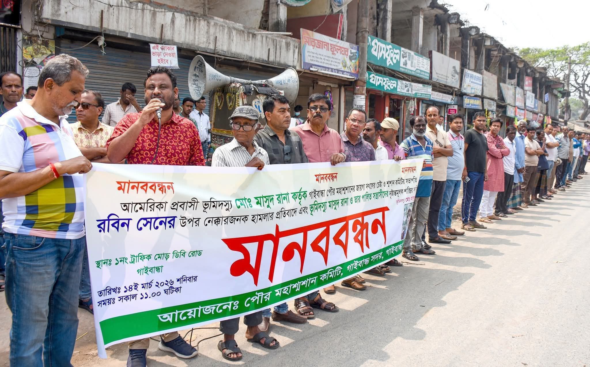 গাইবান্ধা পৌর মহাশ্মশানের জায়গা দখলের চেষ্টা এবং শ্মশান কমিটির সভাপতি রবিন সেনের ওপর হামলার প্রতিবাদে বিক্ষুব্ধ হয়ে উঠেছে সর্বস্তরের মানুষ। এ ঘটনার প্রতিবাদে ও জড়িতদের গ্রেপ্তারের দাবিতে শনিবার (তারিখ যুক্ত করতে পারেন) গাইবান্ধায় মানববন্ধন অনুষ্ঠিত হয়েছে।