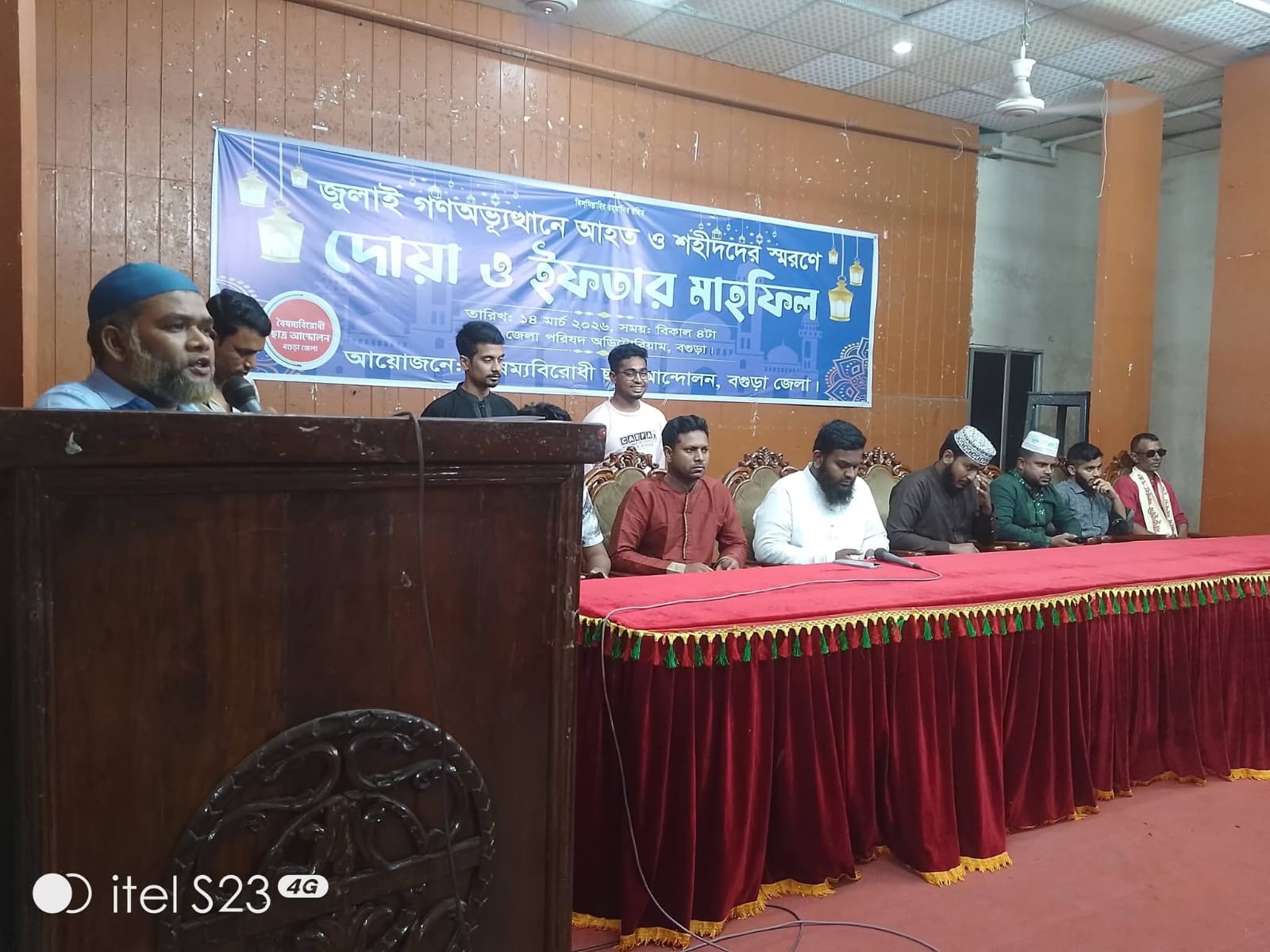 বগুড়ায় বৈষম্যবিরোধী ছাত্র আন্দোলনের আয়োজনে দোয়া ও ইফতার মাহফিল অনুষ্ঠিত।
