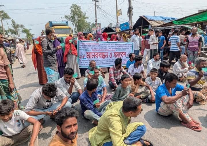 গাইবান্ধার পলাশবাড়ীতে ভিজিএফ-এর চাল না পেয়ে সড়ক অবরোধ ও মানববন্ধন করেছেন বিক্ষুব্ধ কার্ডধারীরা