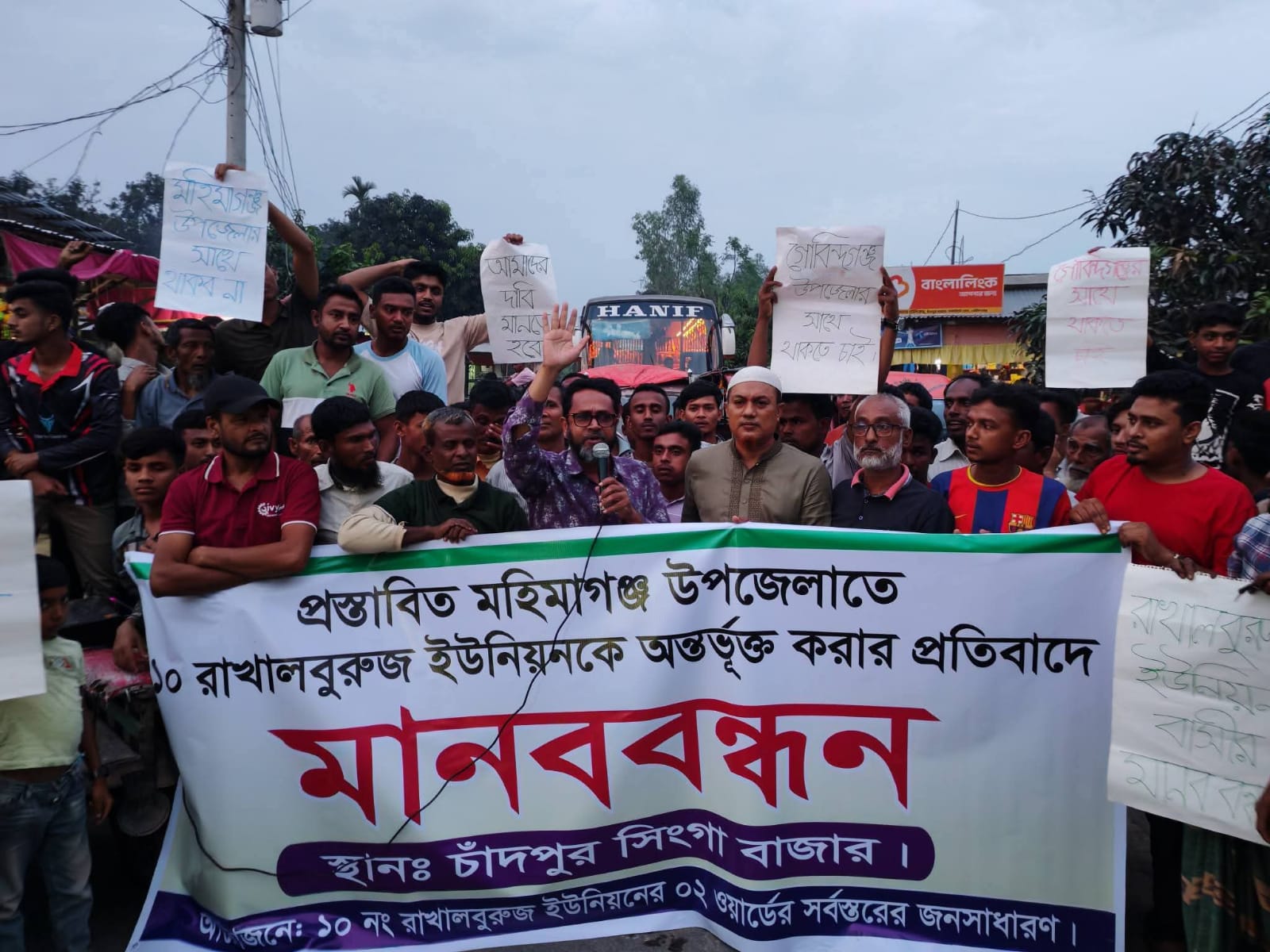 গাইবান্ধার গোবিন্দগঞ্জে রাখালবুরুজ ইউনিয়নকে প্রস্তাবিত মহিমাগঞ্জ উপজেলায় অন্তর্ভুক্ত করার প্রতিবাদে মানববন্ধন ও সড়ক অবরোধ