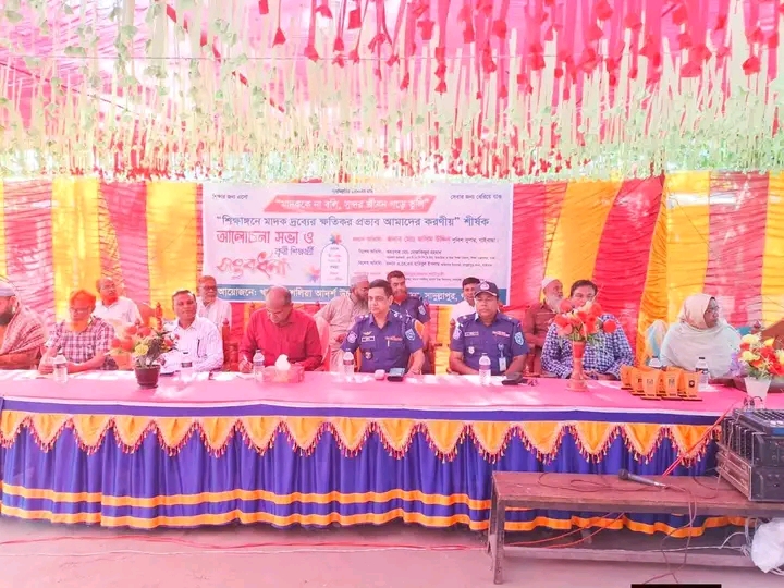 শিক্ষাঙ্গনে মাদক দ্রব্যের ক্ষতিকর প্রভাব আমাদের করণীয়” শীর্ষক আলোচনা সভা ও কৃতী শিক্ষার্থী সংবর্ধনা অনুষ্ঠানে পুলিশ সুপার মহোদয়।