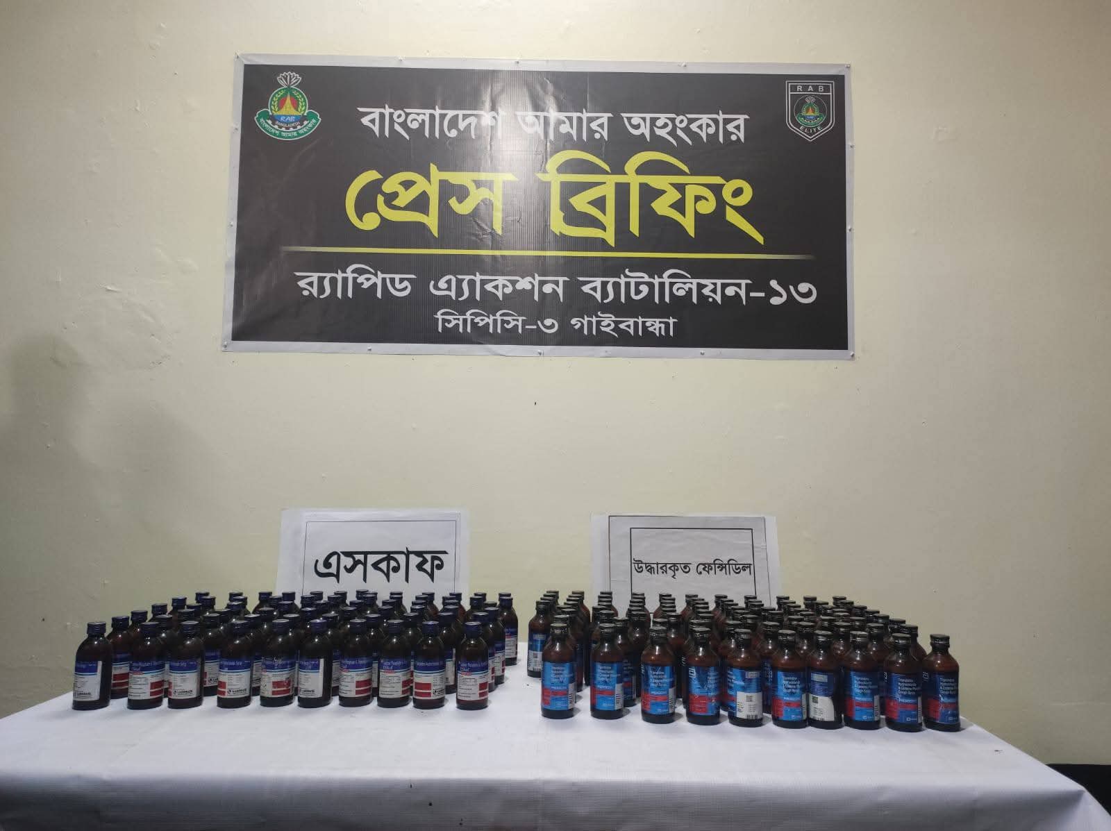 গাইবান্ধা ও রংপুরে র্যাব-১৩ এর পৃথক অভিযান: ফেন্সিডিল, এস্কাফ ও গাঁজাসহ গ্রেফতার ৩