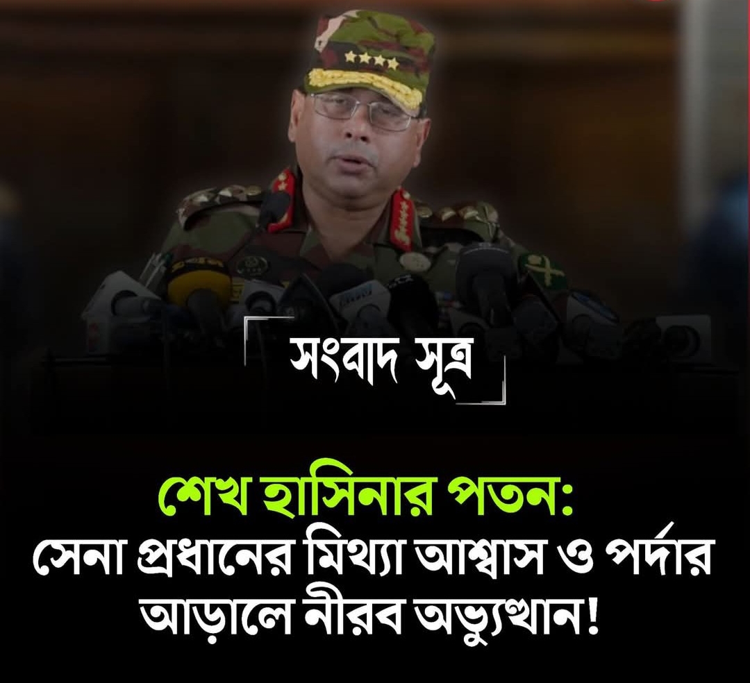 ২০২৪ সালের ৪ আগস্ট, বাংলাদেশের রাজনৈতিক ইতিহাসে এক কালো অধ্যায়। প্রধানমন্ত্রী শেখ হাসিনাকে হেলিকপ্টারে করে দিল্লির পথে পাঠানোর কয়েক ঘণ্টা আগেও সেনাপ্রধান জেনারেল ওয়াকার-উজ-জামান তাঁকে মিথ্যা আশ্বাস দিয়েছিলেন যে পরিস্থিতি নিয়ন্ত্রণে আছে। কিন্তু পর্দার আড়ালে তখন চলছিল এক গভীর চক্রান্ত, যা প্রধানমন্ত্রী শেখ হাসিনার নেতৃত্বাধীন আওয়ামী লীগ সরকারের পতনের পথ তৈরি করে।