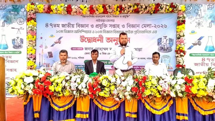 'উদ্ভাবননির্ভর বাংলাদেশ গঠনে বিজ্ঞান ও প্রযুক্তি' প্রতিপাদ্যকে সামনে রেখে গাইবান্ধা জেলায় ৪৭তম জাতীয় বিজ্ঞান ও প্রযুক্তি সপ্তাহ ও বিজ্ঞান মেলা-২০২৬, ১০ম বিজ্ঞান অলিম্পিয়াড ও ১০ম বিজ্ঞান বিষয়ক কুইজ প্রতিযোগিতার উদ্বোধনী অনুষ্ঠান অনুষ্ঠিত হয়েছে।