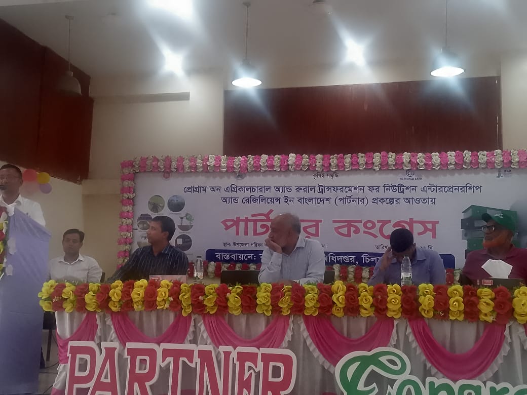 নুরআলম, চিলমারী (কুড়িগ্রাম) প্রতিনিধি: কুড়িগ্রাম চিলমারী কৃষি সম্প্রসারণ অধিদপ্তরের আয়োজনে- প্রোগ্রাম অন এগ্রিকালচারাল এন্ড রুরাল ট্রান্সফরমেশন ফর নিউট্রেশন ইন্টারপ্রেনরশিপ এন্ড রিলিজিয়ান্স ইন বাংলাদেশ ( পার্টনার) প্রকল্পের আয়তায় পার্টনার কংগ্রেস অনুষ্ঠিত হয়েছে।