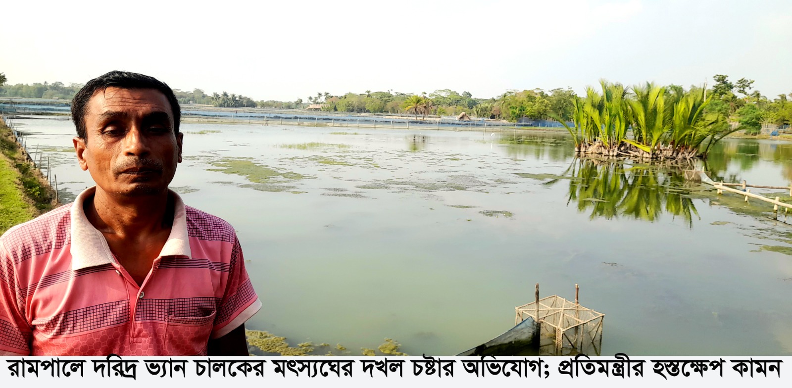 রামপালে ভ্যান চালক শেখর মন্ডলের মৎস্যঘের দখল