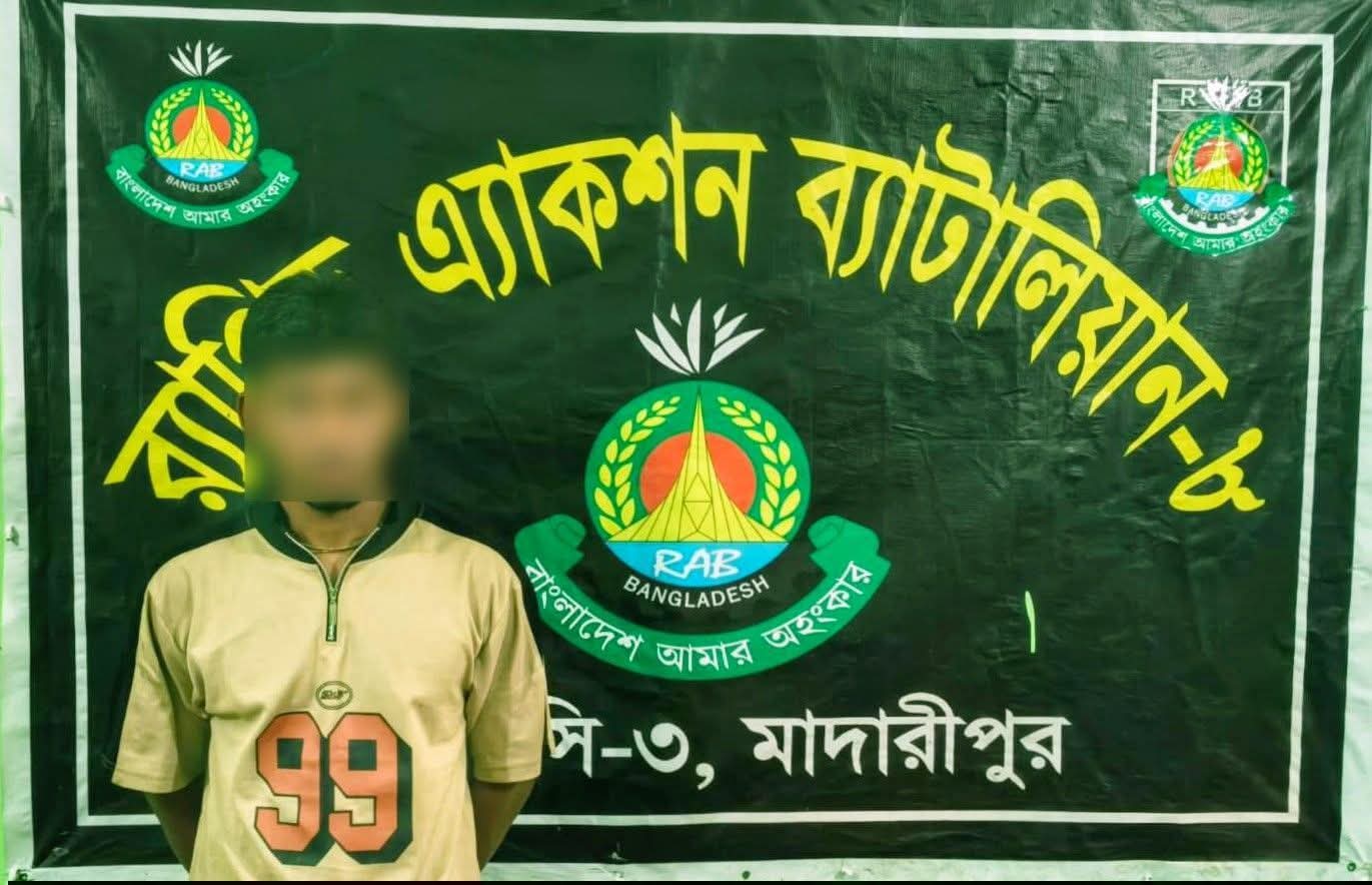 বৃহস্পতিবার (২৩ এপ্রিল)বিকেলে মাদারীপুর সদর উপজেলার কানাগাছিরা এলাকায় র্যাব-১৩ (রংপুর) ও র্যাব-৮ (মাদারীপুর)-এর যৌথ অভিযাে তাকে গ্রেফতার করা হয়।